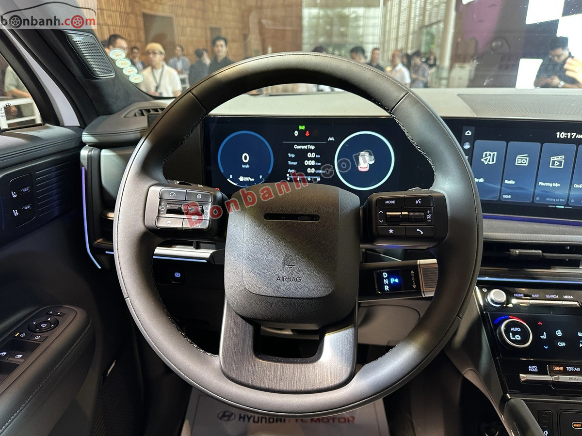 Hyundai SantaFe Prestige 2025 được trang bị cao cấp với màn hình cong kép 12.3 inch, nội thất tiện nghi (sưởi/làm mát ghế, sạc không dây, cửa sổ trời đôi), hệ thống âm thanh Bose 12 loa, cần số điện tử, cùng gói công nghệ hỗ trợ lái ADAS đầy đủ như < phanh khẩn cấp tự động, < giám sát điểm mù, < cruise control thích ứng, và nhiều tính năng an toàn tiêu chuẩn khác...
